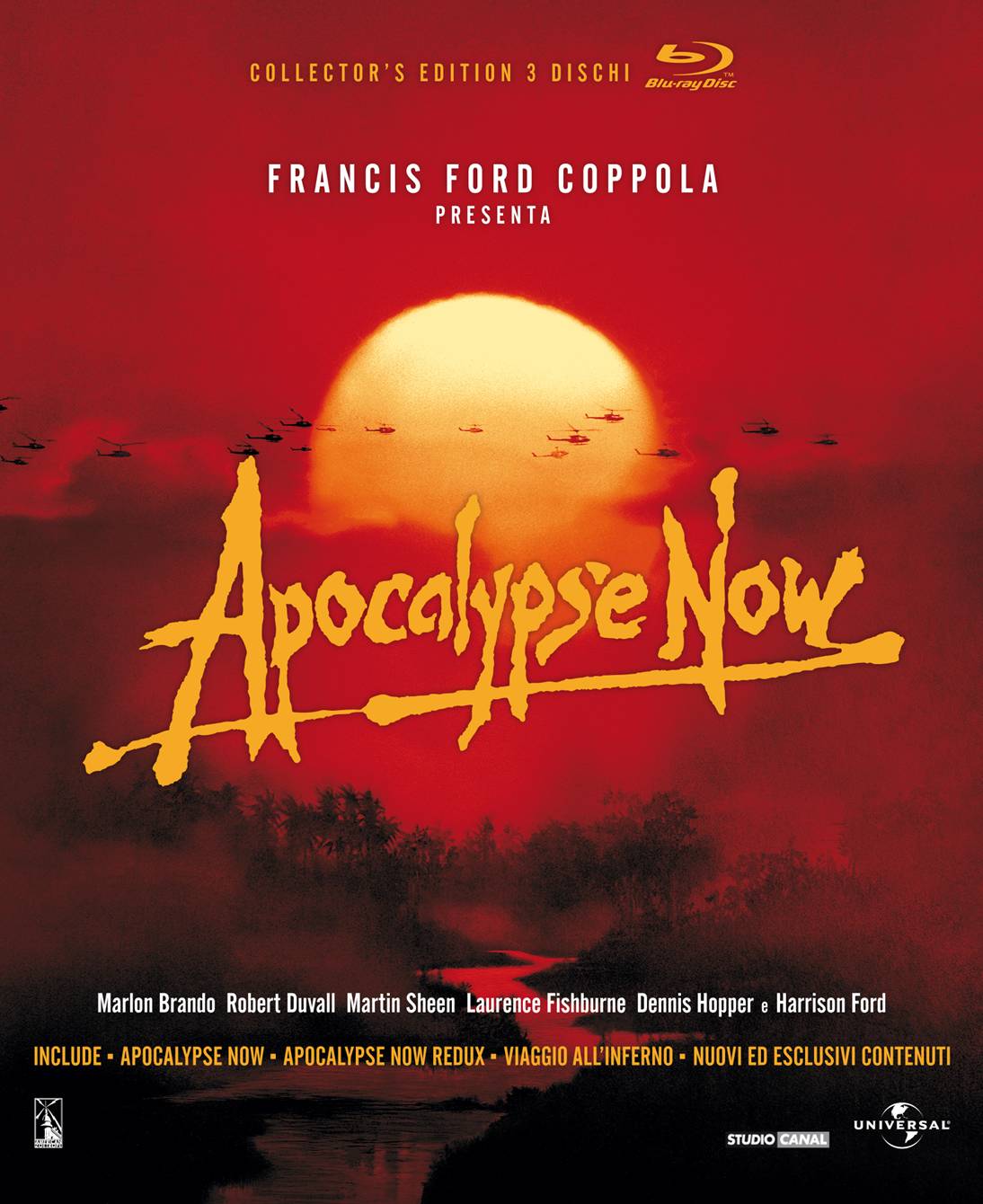 Marlon Brando, Martin Sheen, Dennis Hopper, Robert Duvall, Harrison Ford. Secondo l’American Insitute, “Apocalypse Now” rientra di diritto tra i cento film più belli di tutti i tempi e tra i cinquanta più belli per IMDb. Qui di seguito trovate l’elenco nel dettaglio di tutte le particolarità di questa speciale edizione del film: