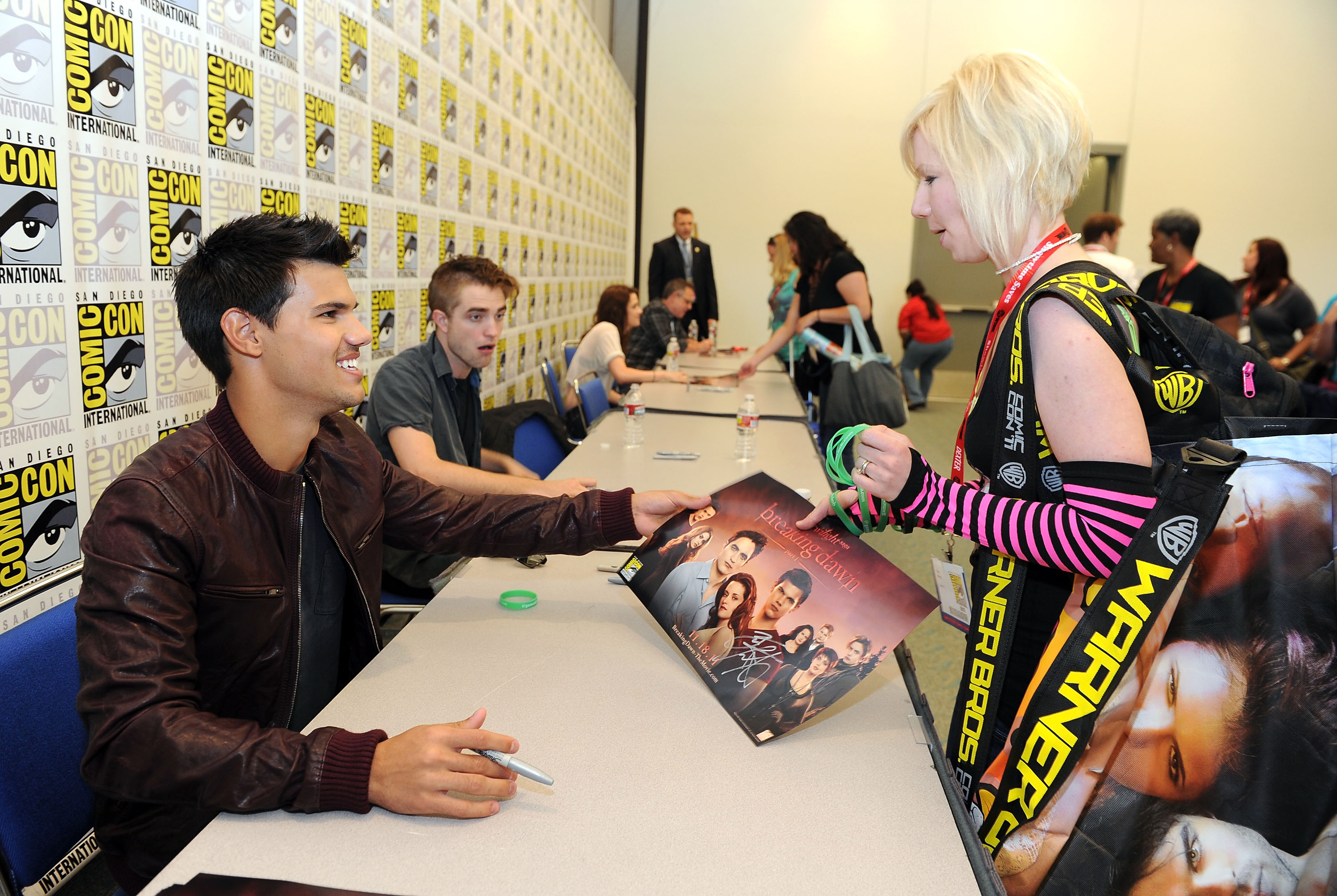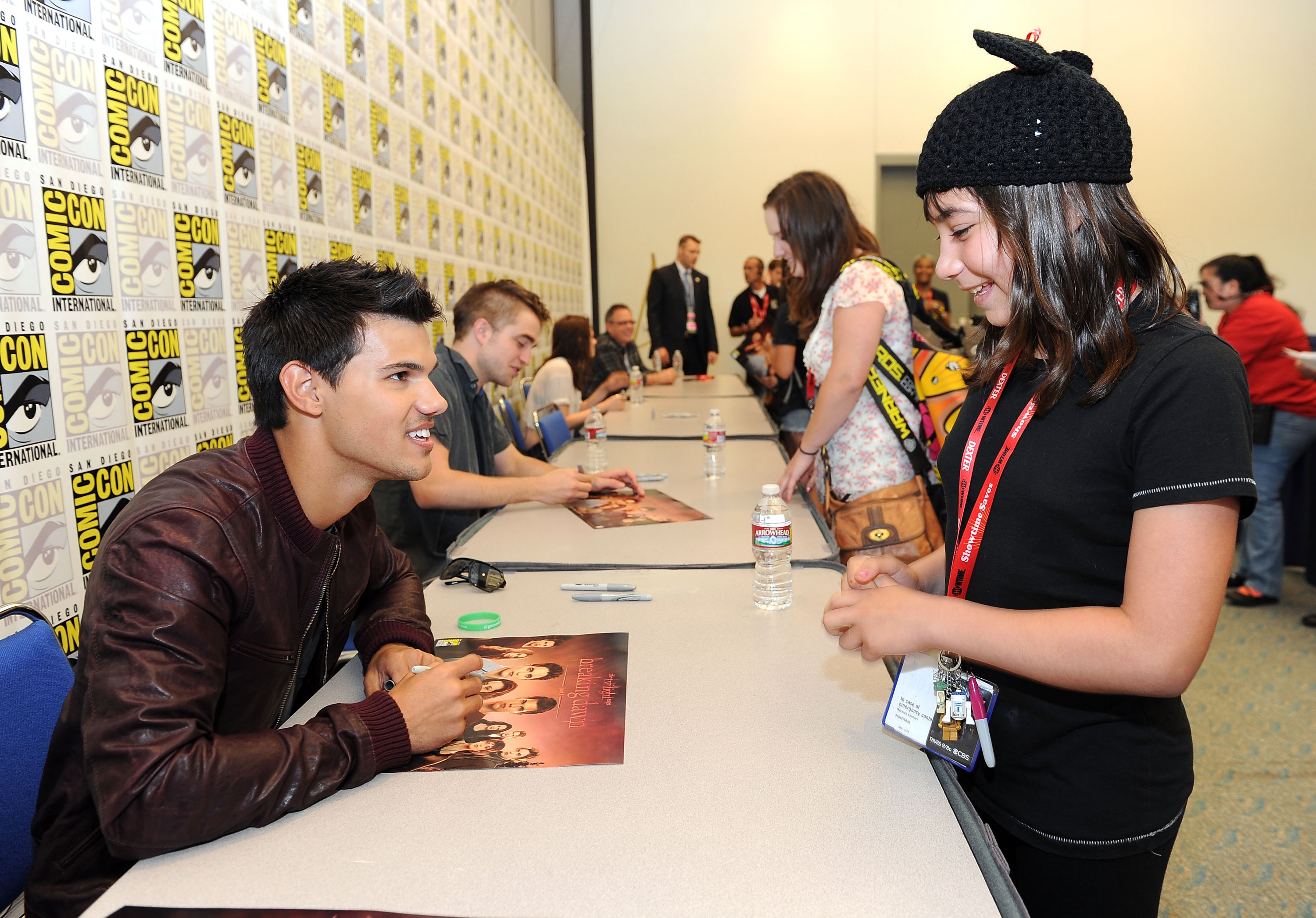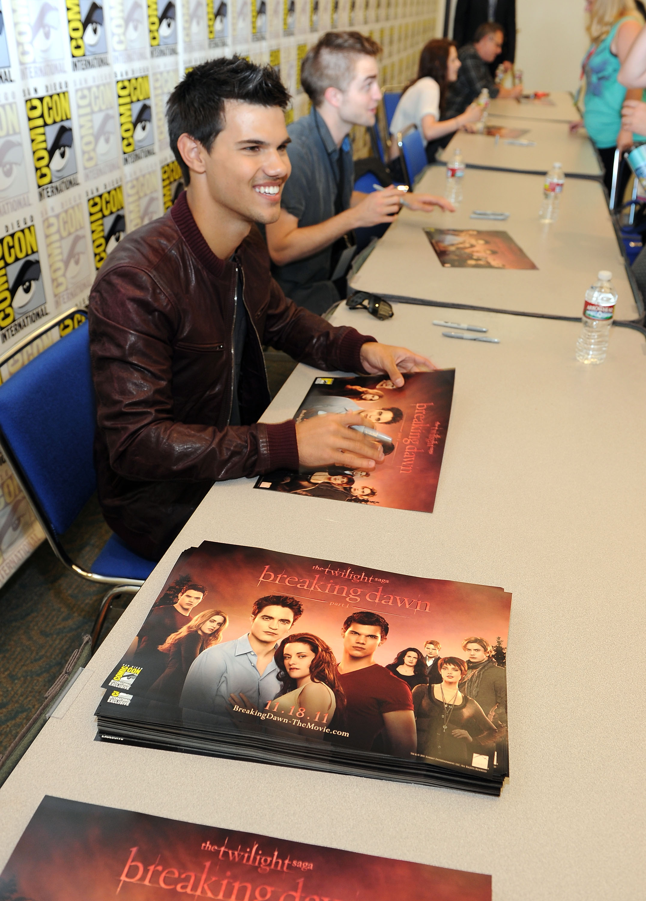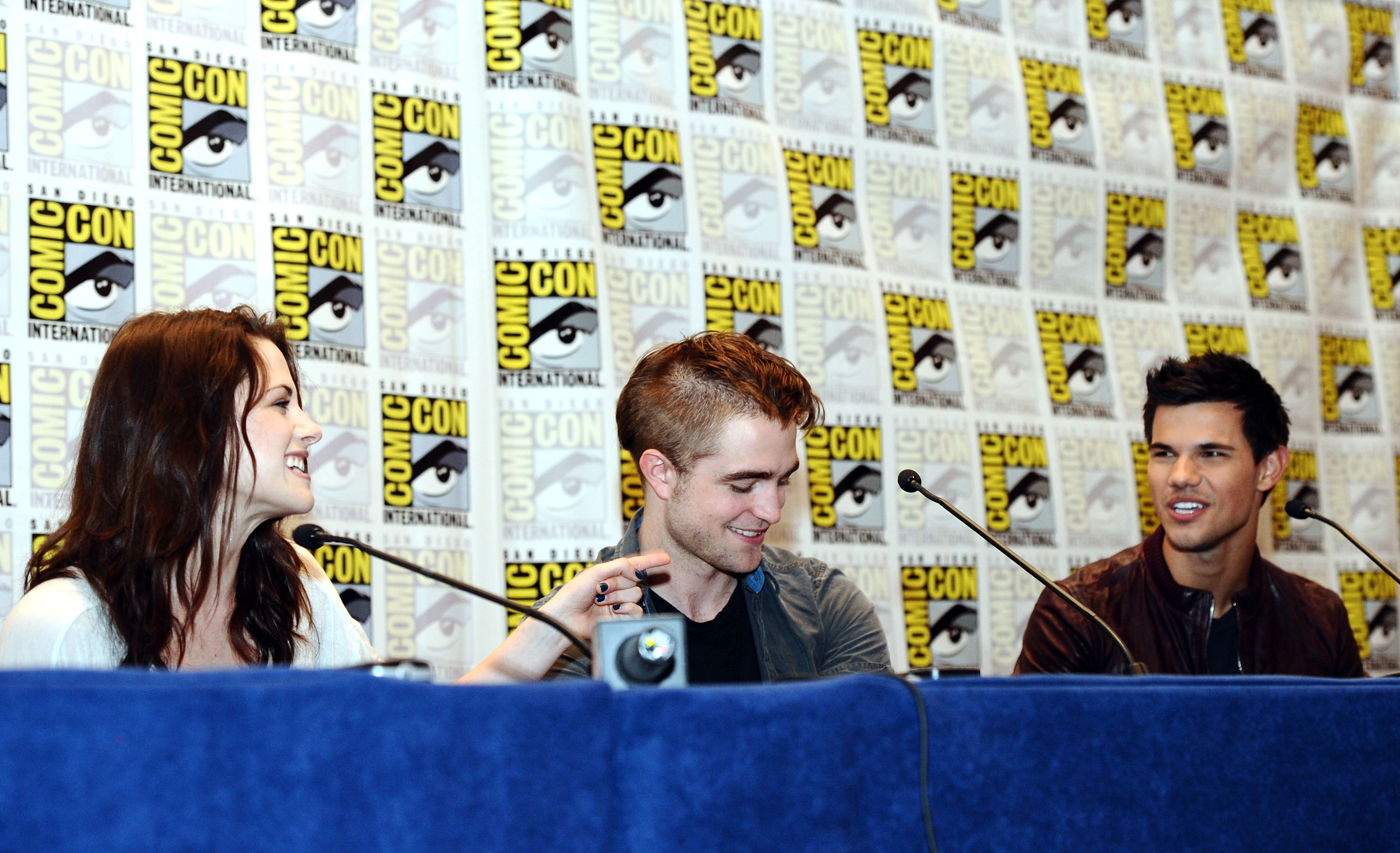 Taylor Lautner non è stato da meno. Il muscoloso licantropo si prepara a tornare in sala con “Abduction” al fianco della fidanzatina Lily Collins, che farà la concorrenza nei panni di Biancaneve alla collega Kristen Stewart. Robert Pattinson invece è impegnato sul set di “Cosmopolis” ed ha sfoggiato un nuovo taglio di capelli ed un sorriso capace di mandare in visibilio le ragazzine. Al Comic-con sono state presentate