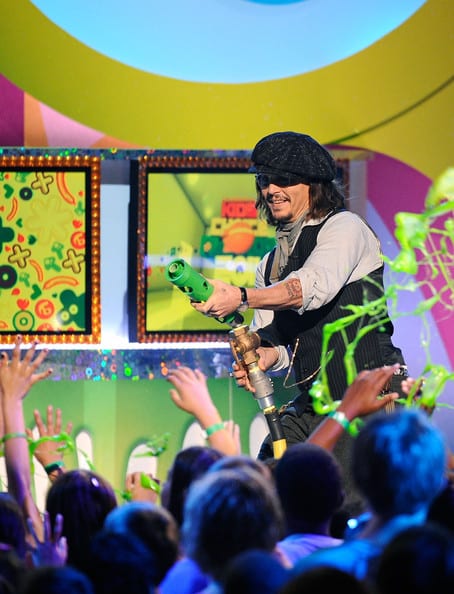 Le parole di Johnny Depp sono molto belle, Penelope infatti lo ha abbracciato fortissimo, emozionata anche per il grande evento. Ma non è finita qui, perché gli impegni dell’attore che interpreta Jack Sparrow sono andati avanti ai Kids’ Choiche Awards, dove è stato premiato come miglior attore per “Alice in Wonderland” di Tim Burton, nel quale ha interpretato il Cappellaio Matto. La carriera di Johnny Depp continua ad andare avanti a gonfie vele, dopo aver ringraziato i fan per il premio ottenuto, si è divertito a creare scompiglio lanciando un liquido verde sul pubblico, a voi le foto!