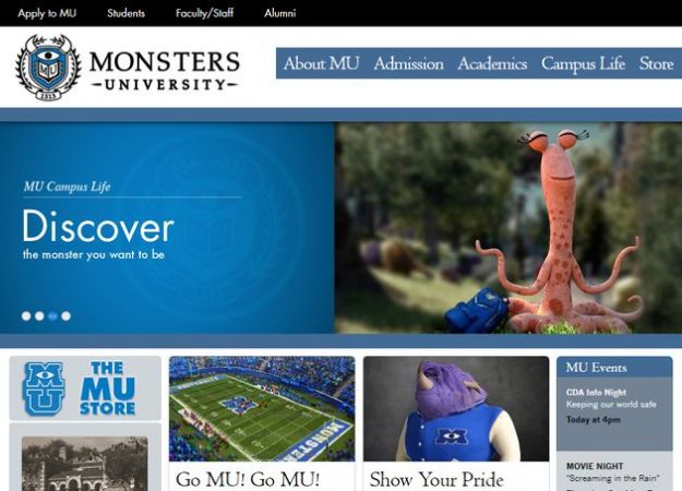 Si tratta di un vero e proprio spazio internet dove gli appassionati e i curiosi delle avventure dei mostriciattoli di “Monsters & Co.“, “Monsters University” infatti ne è il prequel, sbizzarrirsi a navigare all’interno del campus in forma multimediale, come fosse un portale vero e proprio di una facoltà universitaria.