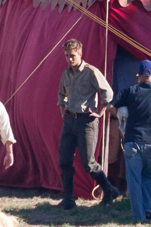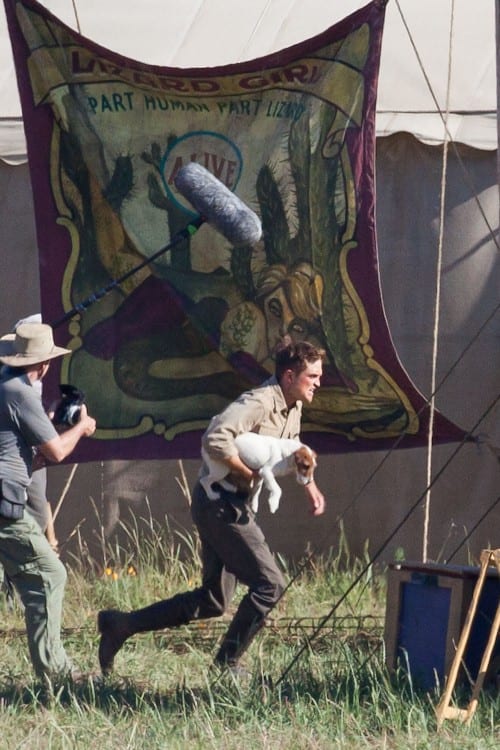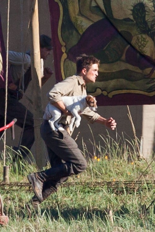 Robert Pattinson, dopo la promozione di “Eclipse” è ritornato sul set di “Water for Elephants“, dove lo ritroviamo in compagnia di un cane che tiene in braccio.