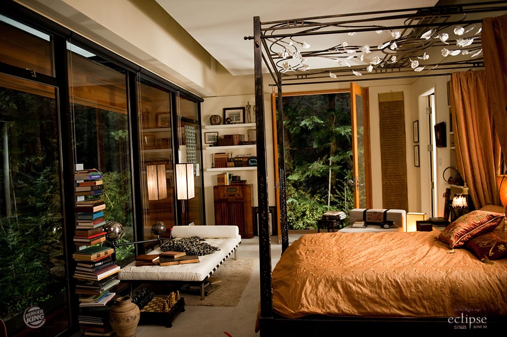 Ecco Robert Pattinson e Kristen Stewart nella famosa scena del prato fiorito, ma si può vedere anche parte della scenografia del film, tanto per farvi un’idea dell’ambiente di lavoro dei vostri idoli!